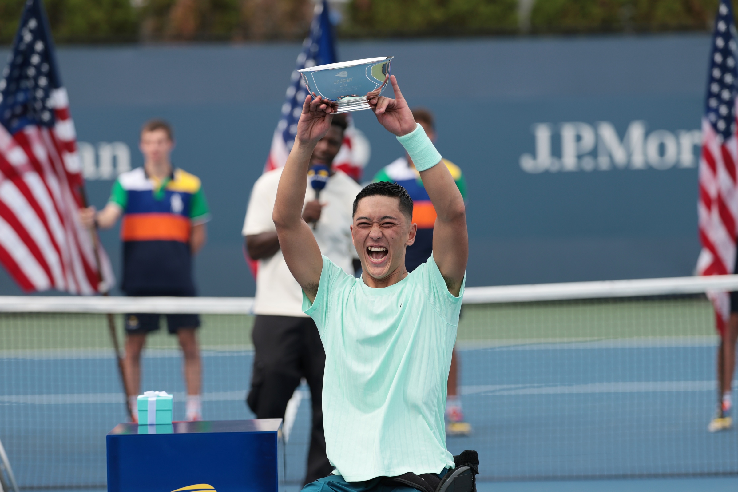 ところでこの決勝戦、第1セットの第7ゲームが終了したところで珍しい光景が演出された。別のコートで行われていた車いすの男子シングルス優勝の小田凱人とクアード・クラス優勝のニールス・ビンクがコートに招き入れられ、小田の生涯ゴールデンスラム達成も伝えられた。同じ偉業を22年に達成した国枝慎吾は当時38歳だったが、小田はまだ19歳だ。これほどの年齢差の背景には、16年までウィンブルドンで車いすのシングルスの部が開催されていなかったという歴史があるが、こうして急成長する車いすテニス界で最年少記録を次々と打ち立てる小田の未来は、まさに競技そのものの未来なのだろう。