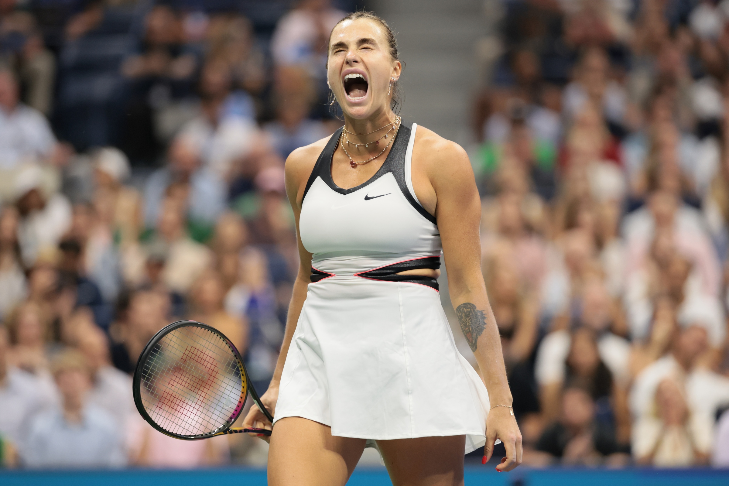 今年のグランドスラム・タイトルをアルカラスとシナーで半分ずつ分け合った男子とは対照的に、女子は全て異なる4人の名前が並んだ。その最後の一枠にようやく収まったのは、今年は準優勝(全豪)、準優勝(全仏)、ベスト4(ウィンブルドン)ともどかしい結果に切歯扼腕(せっしやくわん)してきた女王、アリーナ・サバレンカだった。昨年の決勝と同カードとなった準決勝でジェシカ・ペグラを下し、決勝戦の相手はアマンダ・アニシモワ。ウィンブルドンの準決勝で敗れた相手で、通算でも過去3勝6敗と負け越していた。