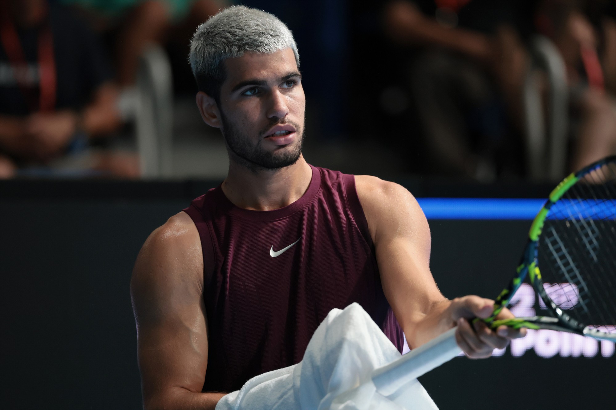 今大会でアルカラスが格別の注目を集めているのは、練習スケジュールでも窺えた。ほとんどの選手は練習スケジュールが大会の公式サイトで公開されているのだが、アルカラスについては警備上の配慮か、基本的に非公開。決勝の日もやはり非公開。練習はショーコートで行われ、観客は完全にシャットアウト。練習風景は一切見られないにもかかわらず、姿を一目だけでも見ようとコートの出入り口に百人近くが列をなした。アルカラスの移動にはカートが用意され、動線には規制のロープが張られ、セキュリティスタッフが配置された。それでもアルカラスはファンの傍に寄ってきて撮影に応じるなど、制限がかかる中でもファンサービスに努めていた。