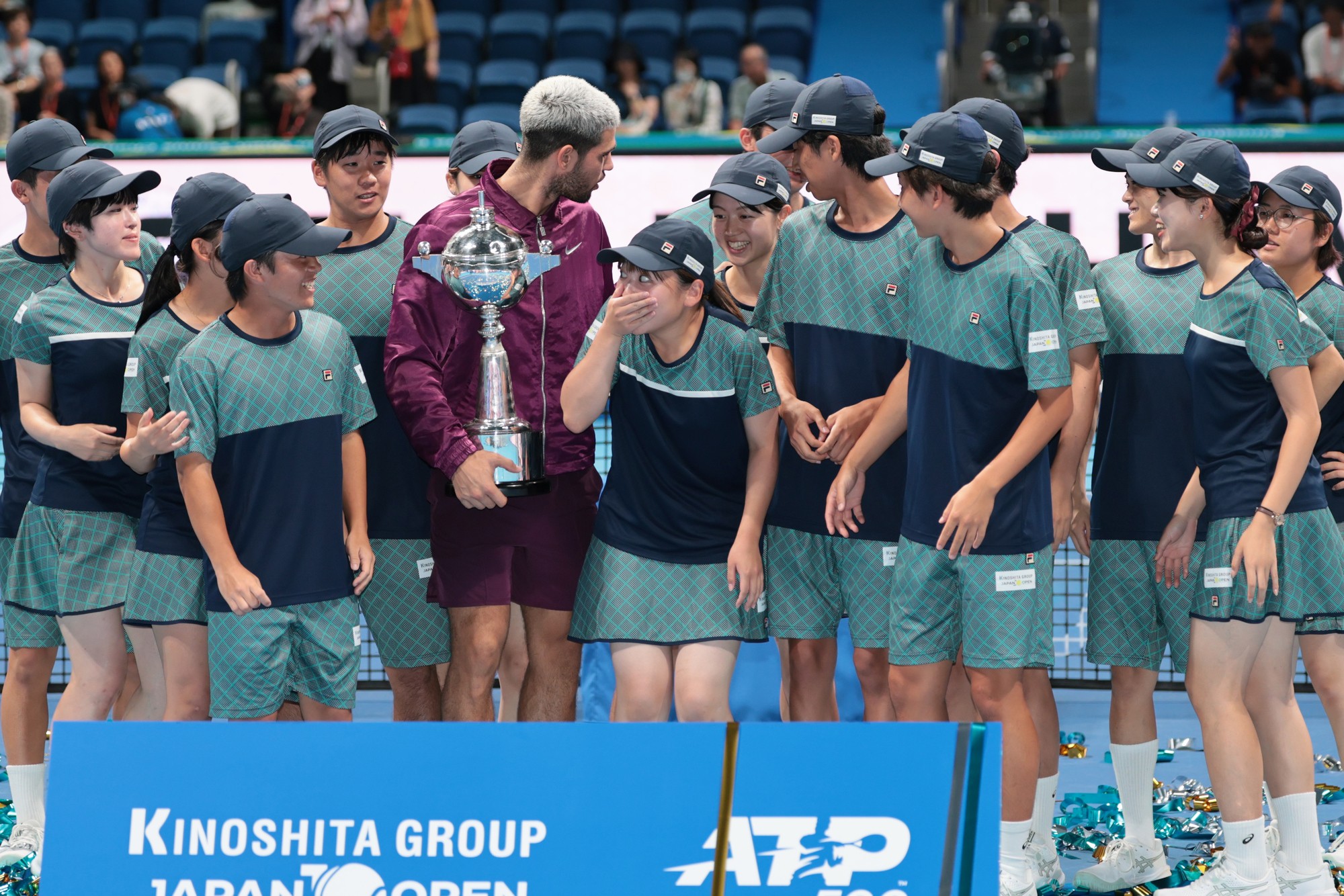 ジャパンオープン終了後、療養に専念するため次戦の上海オープンを欠場するなど、ケガの状態はやはり深刻だった。にもかかわらず全力でプレーし、会場を盛り上げたアルカラス。優勝スピーチでは「また近い内にこの大会に出場したい。早ければ来年にでも」とリップサービスを行い、フォトセッションでは、ボールパーソンを全員集めて記念撮影にも応じた。自分の傍に来るようカルロスに促された少女の困惑と感激が入り混じった表情が印象的だった。